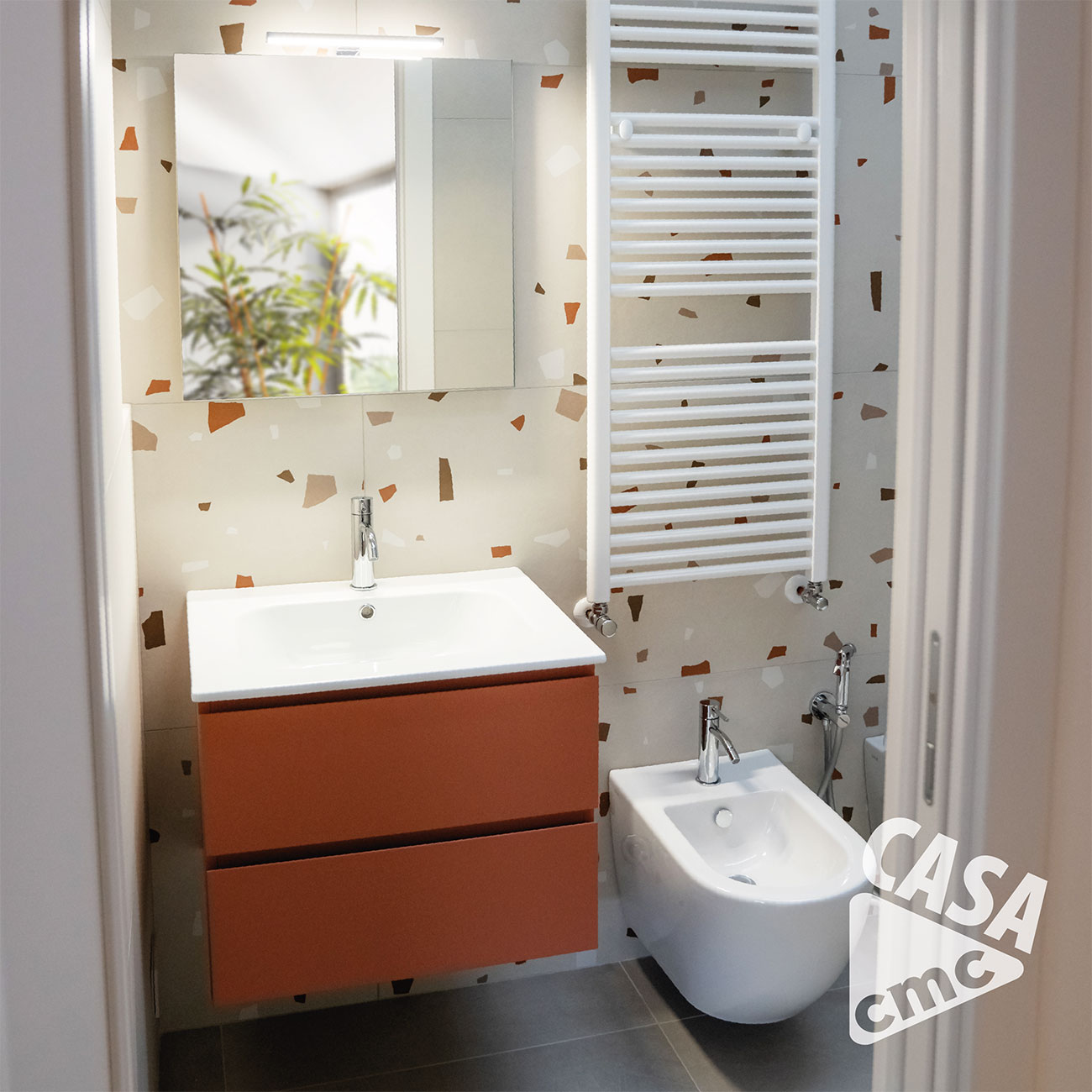 Leggerezza e design, le parole d’ordine nel nuovo progetto CASA CMC. L’effetto marmo colorato dona carattere a tutto l’ambiente bagno e l’effetto resina delle superfici è in perfetta sintonia con le nuove tendenze dell’abitare contemporaneo.